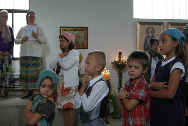 Матушка Любочка пела, окружённая молодыми девочками из прихода. Мы стояли позади венчающихся и молились о их семейном благополучии, о крепком здоровье и о долгожительстве во Славу Божию! О.Сергий поздравил с венчанием и сказал, что любовь конечно очень нужна, но важнее дружба в семейной жизни и жизнь по Закону Божию. Мы видели перед собой живой пример такого брака, трепетные отношения о.Сергия с его матушкой. Казалось, что у них одно большое сердце на двоих, в которое они могут вместить все наши сердца! Ведь в старые времена на Руси в каждой семье отца и мать звали Батюшкой и Матушкой, а семью называли Малой Церковью по образу и подобию церкви Господней. Хорошо бы нам никогда не забывать об этом!