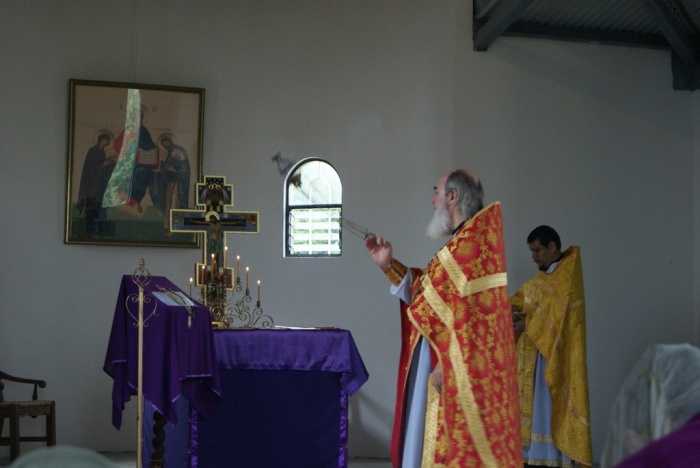 В воскресенье при большом количестве народа, о.Сергий в сослужении с о.Игнатием совершили Божественную Литургию, за которой причастилось много людей. Вместе с нами молились посол Российской Федерации Александр Константинович Догадин с супругой Ириной Владимировной. После литургии о.Сергий благодарил от имени Владыки Митрополита Илариона батюшку Игнатия за служение на нашем приходе, за любовь о.Игнатия к прихожанам и за их ответную любовь к о.Игнатию.