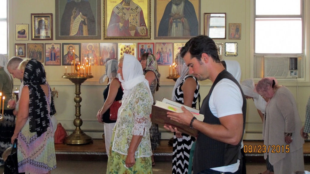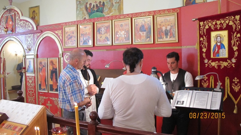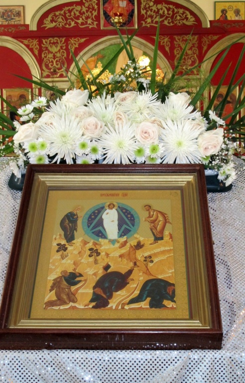 В 12-ю неделю по Пятидесятнице служил протоиерей Пётр Куницкий, а батюшка Алексей Быконь помогал певчим, проникновенно исполняя вместе с ними песнопения, положенные для Божественной Литургии. В центре храма всё также находилась икона праздника Преображения Господня.